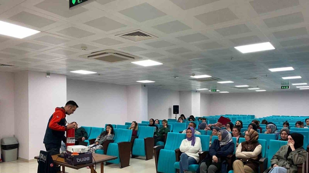 Afyonkarahisar İl Afet ve Acil Durum Müdürlüğü (AFAD) ekipleri kız öğrenci yurdunda eğitim verdi.