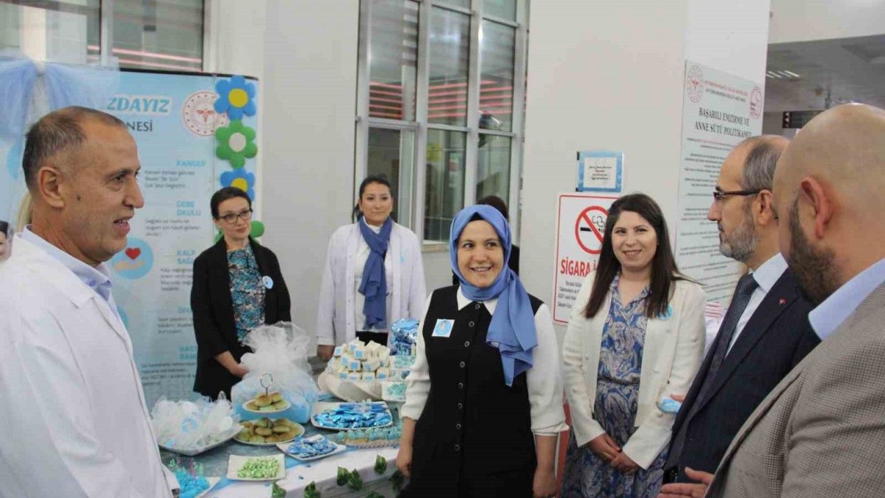 İl Sağlık Müdürü Dr. Hakkı Öztürk, Halk Sağlığı Hizmetleri Başkanı Dr. İlker Ahmet Çınar, Başhekim Opr. Dr. Osman Acar ve hastane yönetimi standı ziyaret etti. Öztürk ve beraberindekiler, anne sütü ve normal doğum konularında hastanede yapılan çalışmalar hakkında ilgili personel tarafından bilgilendirildi. İl Sağlık Müdürü Öztürk, annelere ve anne adaylarına destek mesajı vererek emzirmenin teşviki ve normal doğumun yaygınlaştırılmasının toplum sağlığı açısından taşıdığı öneme değindi; çalışmalarda emeği geçen personele ve hastane yönetimine teşekkür etti.