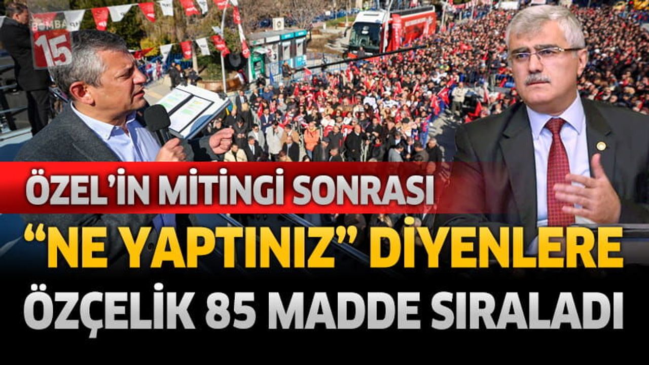 Özgür Özel’in Burdur’un eksikliklerine yönelik eleştirilerine karşılık veren Özçelik, AK Parti hükümetleri ve AK Parti belediye döneminde Burdur’a kazandırılan hizmet ve yatırımları 85 madde halinde sıraladı.