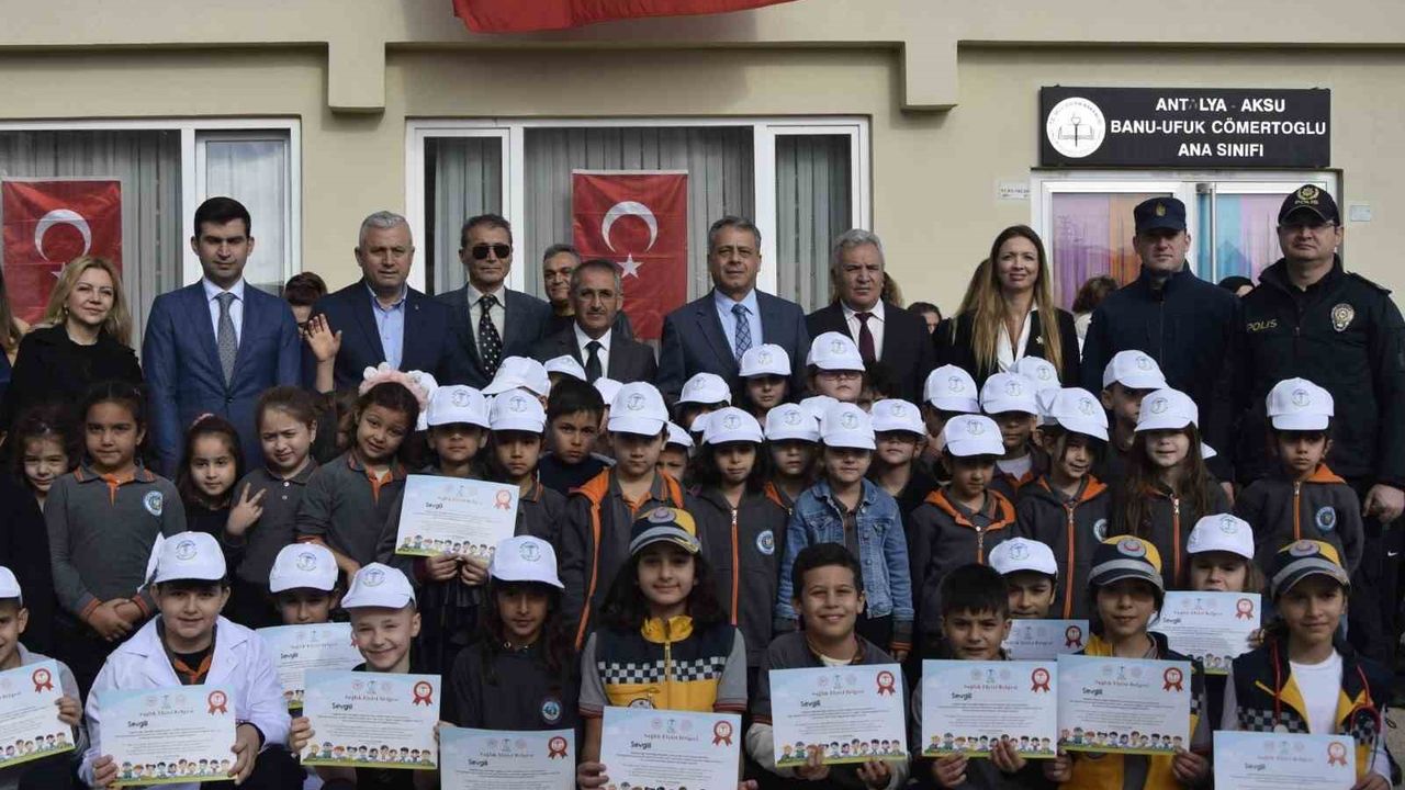 Aksu'da 'Sağlıklı Çocuk Sağlıklı Gelecek' projesi kapsamında düzenlenen etkinlikte öğrenciler eğitimlerini tamamlayarak sağlık elçisi belgelerine kavuştu.
