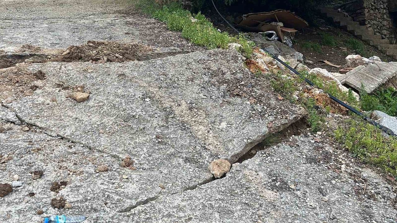 Öte yandan, çatlaklar nedeniyle bir elektrik direğinin de devrilme tehlikesi geçirdiği görüldü. Olması muhtemel bir kazanın önüne geçmek için ekipler bölgede güvenlik önlemi aldı. Yolun çökme anı ve bölgede oluşan hasar ise dron ile görüntülendi. Görüntülerde yolun bir kısmının tamamen çöktüğü ve yollarda ise çatlama olduğu anlar yer aldı.