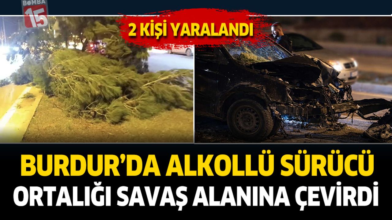 Burdur'da alkollü sürücü otomobiliyle sollamaya çalıştığı araca ardından da refüjdeki ağaca çarptı. Hurdaya dönen otomobildeki 2 kişi yaralandı.