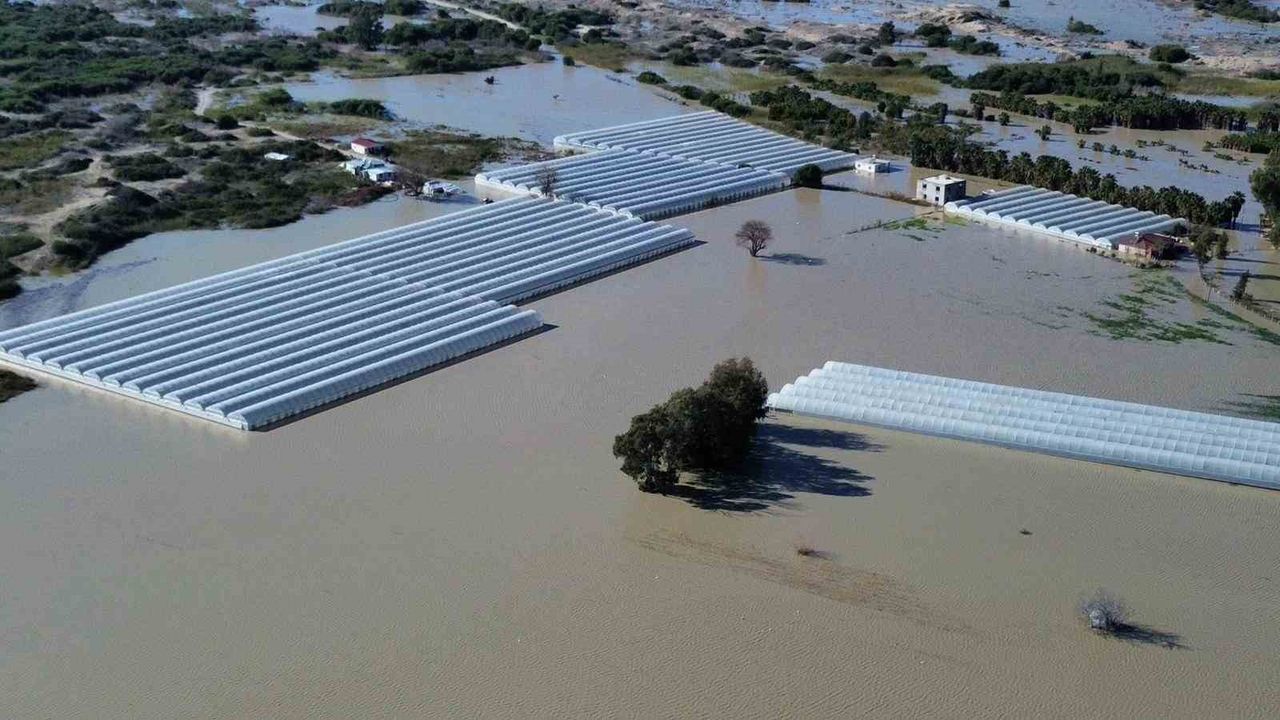 Antalya'nın Kaş ilçesinde etkili olan sağanağın ardından bazı mahallelerde sera ve evler sular altında kaldı.