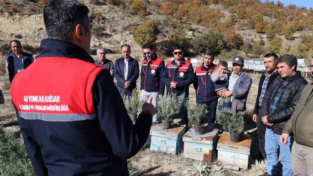 Afyonkarahisar İl Tarım ve Orman Müdürlüğünün "Alternatif Ürünler Afyonkarahisar Tarımına Katkı Sağlıyor Projesi" çerçevesinde arıcılık yapan vatandaşların lavanta fidesi dağıtıldı.