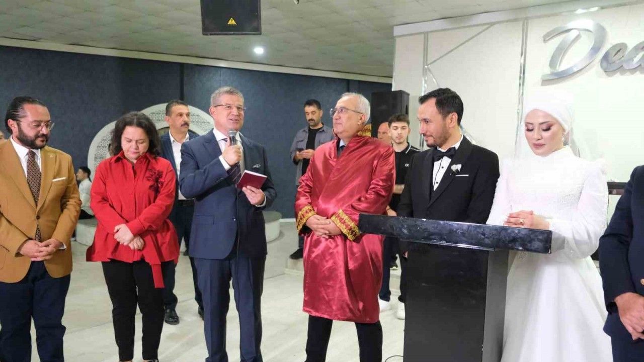 DENİZLİ (İHA) – Çameli Belediye Başkanı Cengiz Arslan, AK Parti Denizli İl Başkanı Muhammet Subaşıoğlu’nun danışmanı gazeteci Kubilay Demir ile Şeyma Çölgeçen çiftinin nikahını kıydı.
