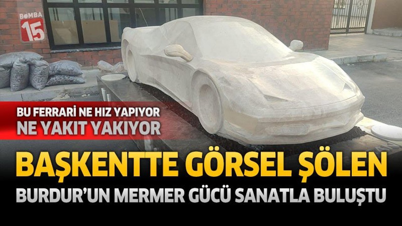 Burdur Tanıtım Günleri boyunca sergilenmeye devam edecek olan mermer Ferrari maketi, organizasyonun en dikkat çeken simgelerinden biri olacağı düşünülüyor.