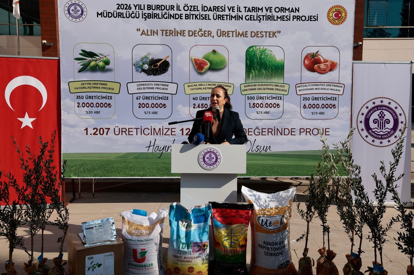 Programda konuşan Vali Tülay Baydar Bilgihan, tarım sektörünün Burdur ekonomisinin temel taşlarından biri olduğunu vurgulayarak, üretimin artırılması ve kırsalda gelir düzeyinin yükseltilmesinin büyük önem taşıdığını ifade etti. Çiftçilerin daha güçlü desteklenmesinin, ilin kalkınma hedefleri açısından kritik rol oynadığını belirtti.