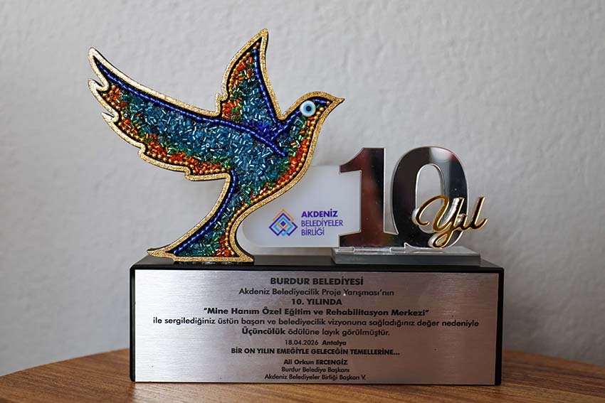 Akdeniz Belediyeler Birliği tarafından bu yıl 10’uncusu düzenlenen Akdeniz Belediyecilik Proje Yarışması’nda Burdur Belediyesi önemli bir başarıya imza attı. Yarışmada “İyi Yönetişim ve Halkla İlişkiler Çalışmaları” kategorisinde yer alan Burdur Belediyesi Mine Hanım Özel Eğitim ve Engelli Rehabilitasyon Merkezi, 3’üncülük ödülüne layık görüldü.