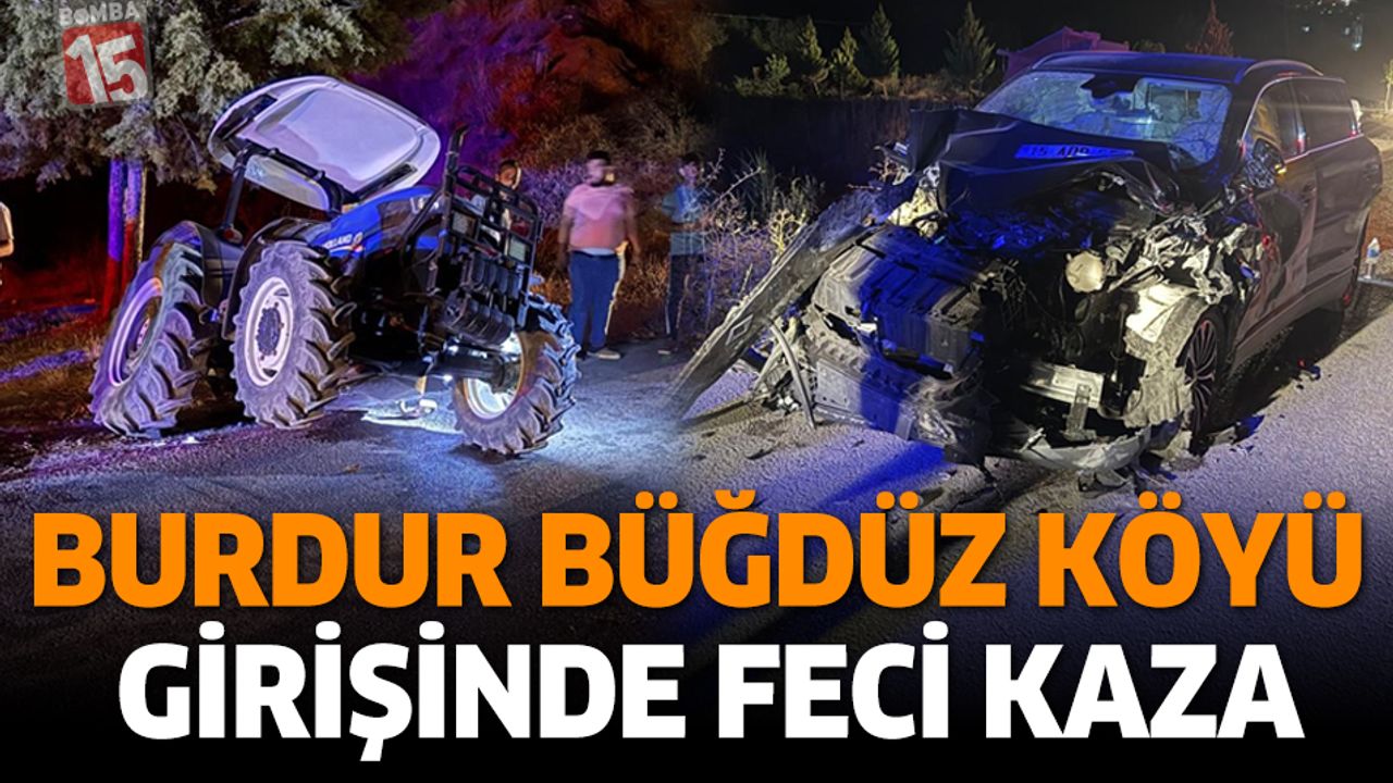 Kaza saat 21.00 sıralarında Burdur merkez Büğdüz köy grup yolunda meydana geldi. Edinilen bilgilere göre köy yakınlarında tali yoldan ana yola çıkan Mustafa A.(45) idaresindeki 42 AKP 842 plakalı römork takılı traktör ile yoldan seyir halinde olan Ahmet Ç.(30) idaresindeki 15 ADP 555 plakalı TOGG marka otomobil çarpıştı. Kazada traktör ve bağlı olan römork devrilip otomobil ise hurdaya dönerken traktör sürücüsü Mustafa A., TOGG marka otomobilin sürücüsü Ahmet Ç. ile araçta yolcu olarak bulunan Meryem Ç.(32), Miraç Ç.(5), Hiranur Ç.(1) ve Elif Ç.(5) yaralandı. Çevredekilerin 112 Acil Çağrı Merkezi'ne ihbarı üzerine olay yerine çok sayıda sağlık, itfaiye ve jandarma ekipleri sevk edildi. Olay yerine gelen itfaiye ekiplerinin çalışmaları sonucu araçtan çıkarılan yaralılar sağlık ekiplerinin ilk müdahalesinin ardından ambulanslar ile Burdur Devlet Hastanesi’ne kaldırıldı. Kaza ile ilgili inceleme başlatılırken yaralıların hayati tehlikelerinin bulunmadığı öğrenildi