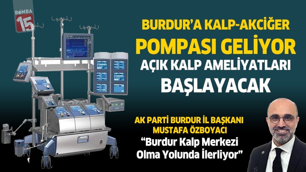 Burdur’un sağlık altyapısını güçlendiren önemli bir yatırım daha hayata geçiyor. Açık kalp ameliyatlarının yapılabilmesi için zorunlu olan Kalp-Akciğer Pompası, Burdur Devlet Hastanesi’ne kazandırılıyor. Cihazın çok yakında hizmete alınacağı duyuruldu.