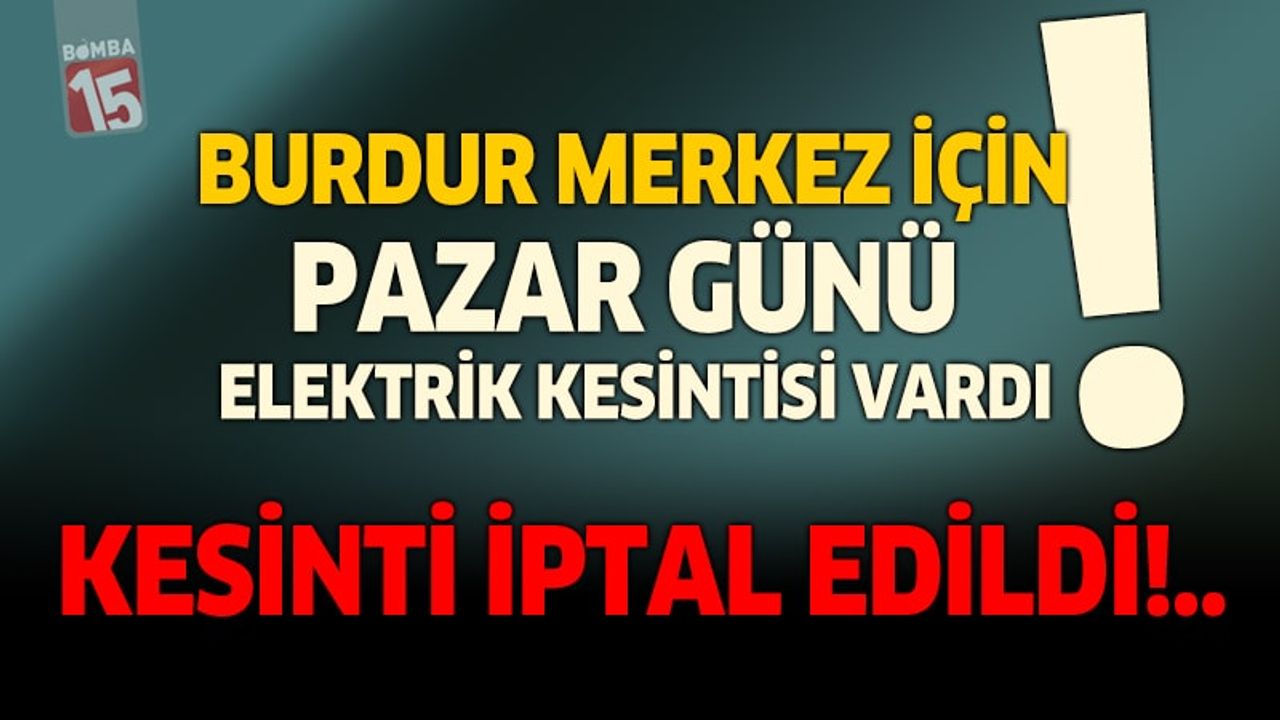 TEİAŞ 7. Bölge Müdürlüğü, 23 Kasım Pazar günü Burdur merkez ve Akyaka Trafo Merkezi’nde yapılacağı duyurulan planlı elektrik kesintisinin iptal edildiğini açıkladı.