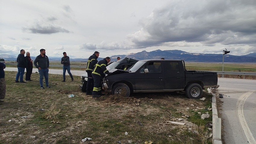 Edinilen bilgilere göre, 15 LB 613 plakalı pick-up sürücüsü Metin Ç. ile araçta yolcu olarak bulunan Adem B. ve 06 GZ 365 plakalı otomobil sürücüsü Şerafettin Ö.’nün karıştığı kazada çarpışmanın etkisiyle araçlar orta refüje çıktı.