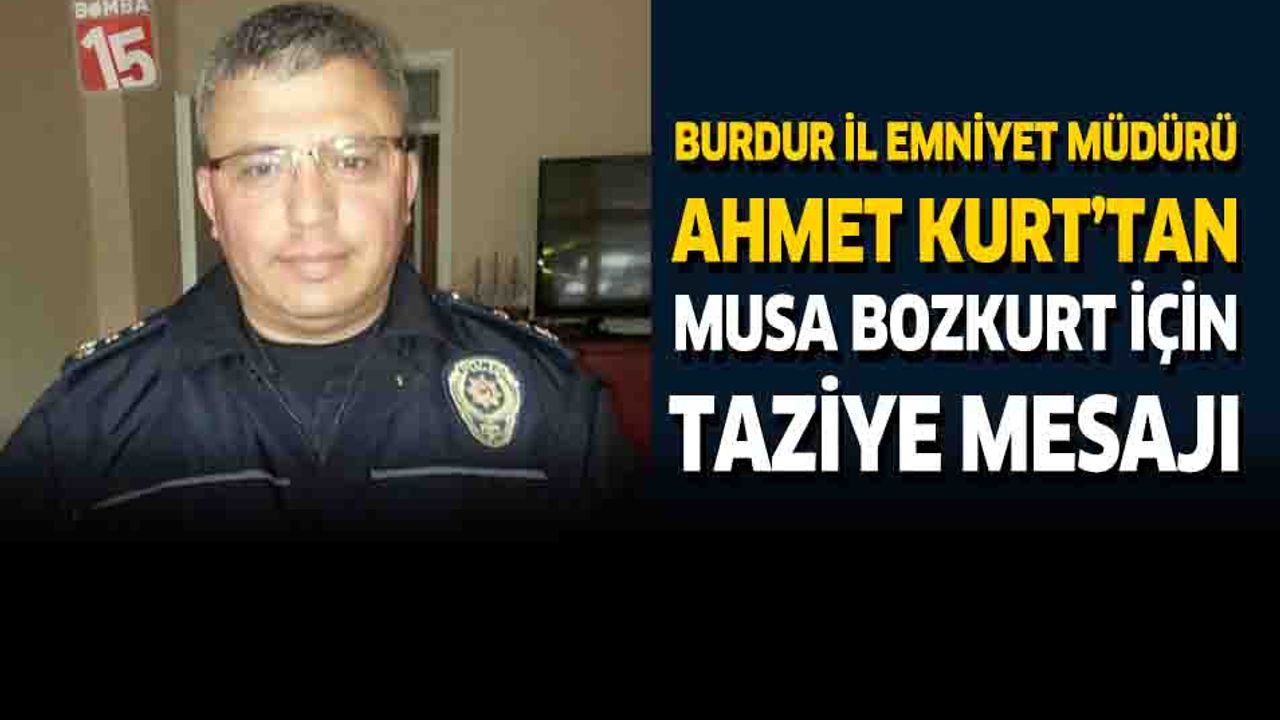 Burdur İl Emniyet Müdürü Ahmet Kurt, Teftiş Kurulu Başkanlığında görev yapan Polis Başmüfettişi ve 1. Sınıf Emniyet Müdürü Musa Bozkurt’un vefatını derin bir üzüntüyle öğrendiğini belirtti.