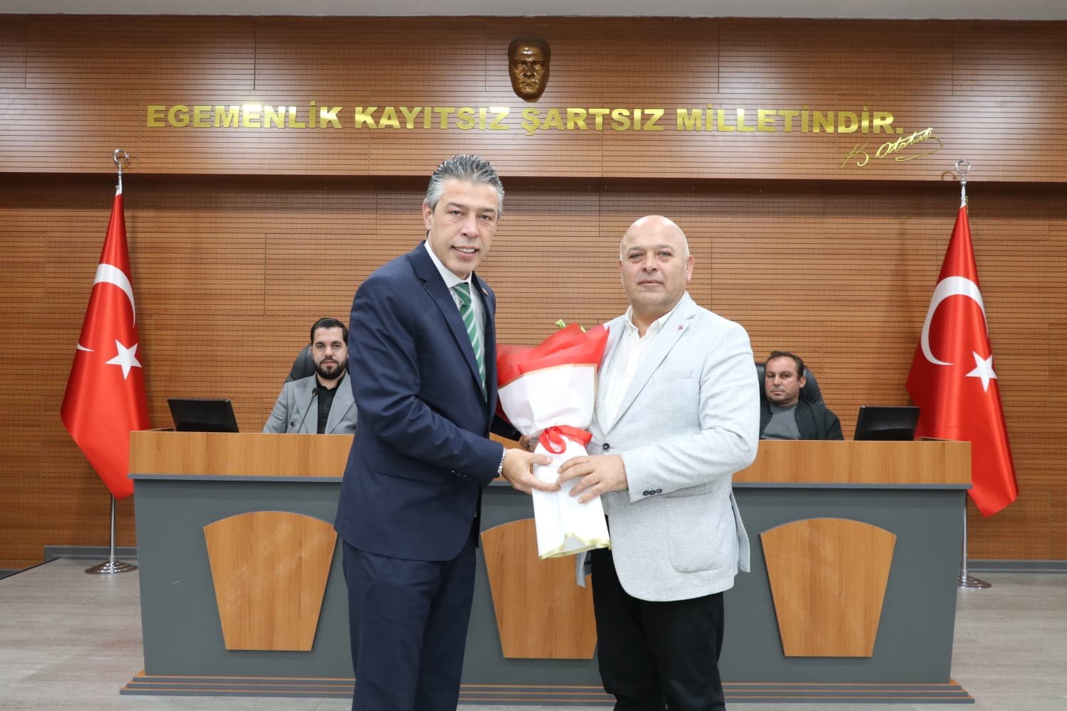 Toplantı öncesinde konuşan Başkan Çelikkaya, birinci dönem İl Genel Meclis Başkanı Levent Tokmaker ile katip üye seçimi sonrası görev yapan Mustafa Tokur ve Özgür Özmen’e hizmetleri ve katkıları dolayısıyla İl Genel Meclisi adına çiçek takdim ederek teşekkür etti.