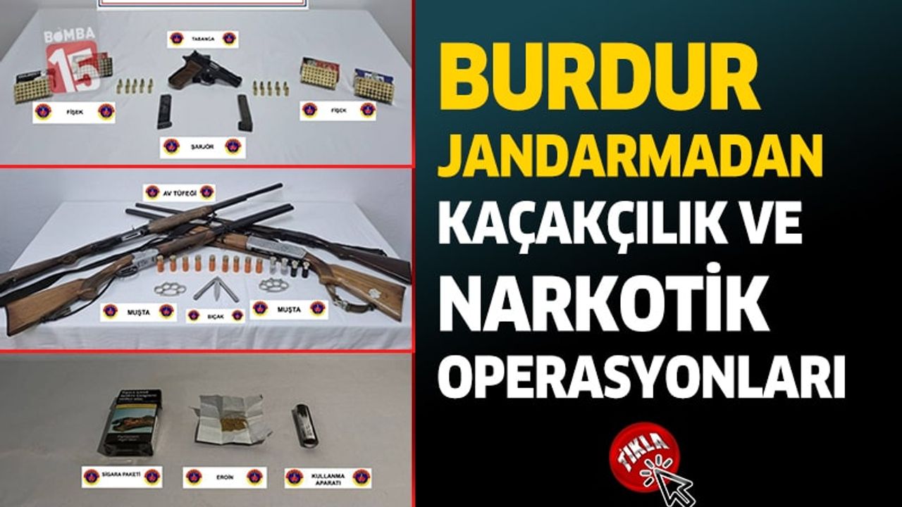 Burdur İl Jandarma Komutanlığı ekipleri, kaçakçılık, organize suçlar ile uyuşturucu ve uyarıcı madde suçlarına yönelik çalışmalarını kararlılıkla sürdürüyor. Cumhuriyet başsavcılıkları koordinesinde yürütülen operasyonlarda çok sayıda silah ve uyuşturucu madde ele geçirilirken, şüpheliler hakkında adli işlem başlatıldı.