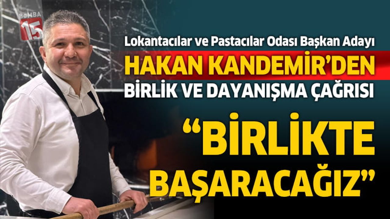 Burdur Lokantacılar ve Pastacılar Odası Başkan Adayı Hakan Kandemir, yarın (29 Ocak 2026 Perşembe günü) yapılacak seçimler öncesinde oda üyelerine çağrıda bulundu. Birlikte Başaracağız diyen Kandemir, seçimlere katılımın önemine dikkat çekerek tüm üyeleri destek vermeye davet etti.