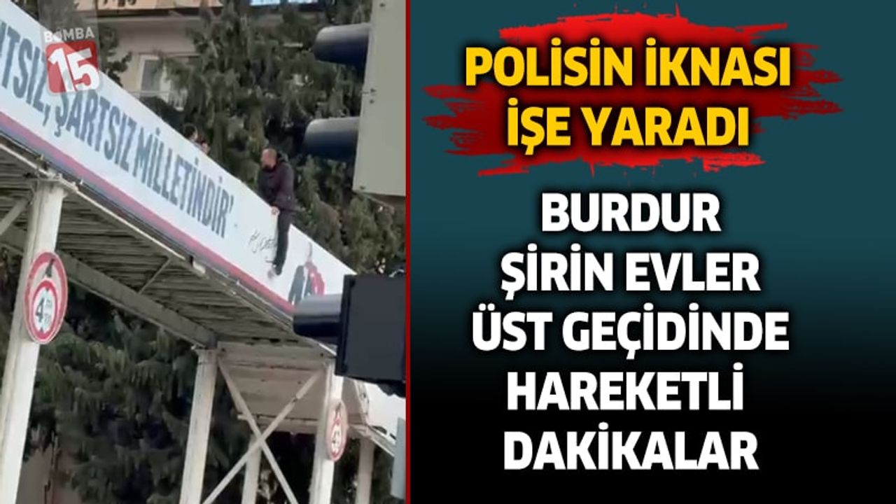 Polis ekiplerinin yürüttüğü ikna çalışmaları sonucunda şahıs bulunduğu yerden güvenli şekilde indirildi. Şahıs sağlık kontrolünün yapılması amacıyla Burdur Devlet Hastanesi’ne götürüldü.