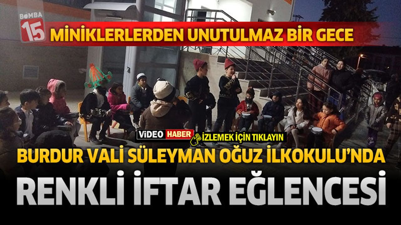Burdur’da Vali Dr. Süleyman Oğuz İlkokulu’nda düzenlenen iftar programında öğrenciler ilahiler, maniler ve Hacivat-Karagöz gösterisiyle ailelerine unutulmaz bir Ramazan akşamı yaşattı.