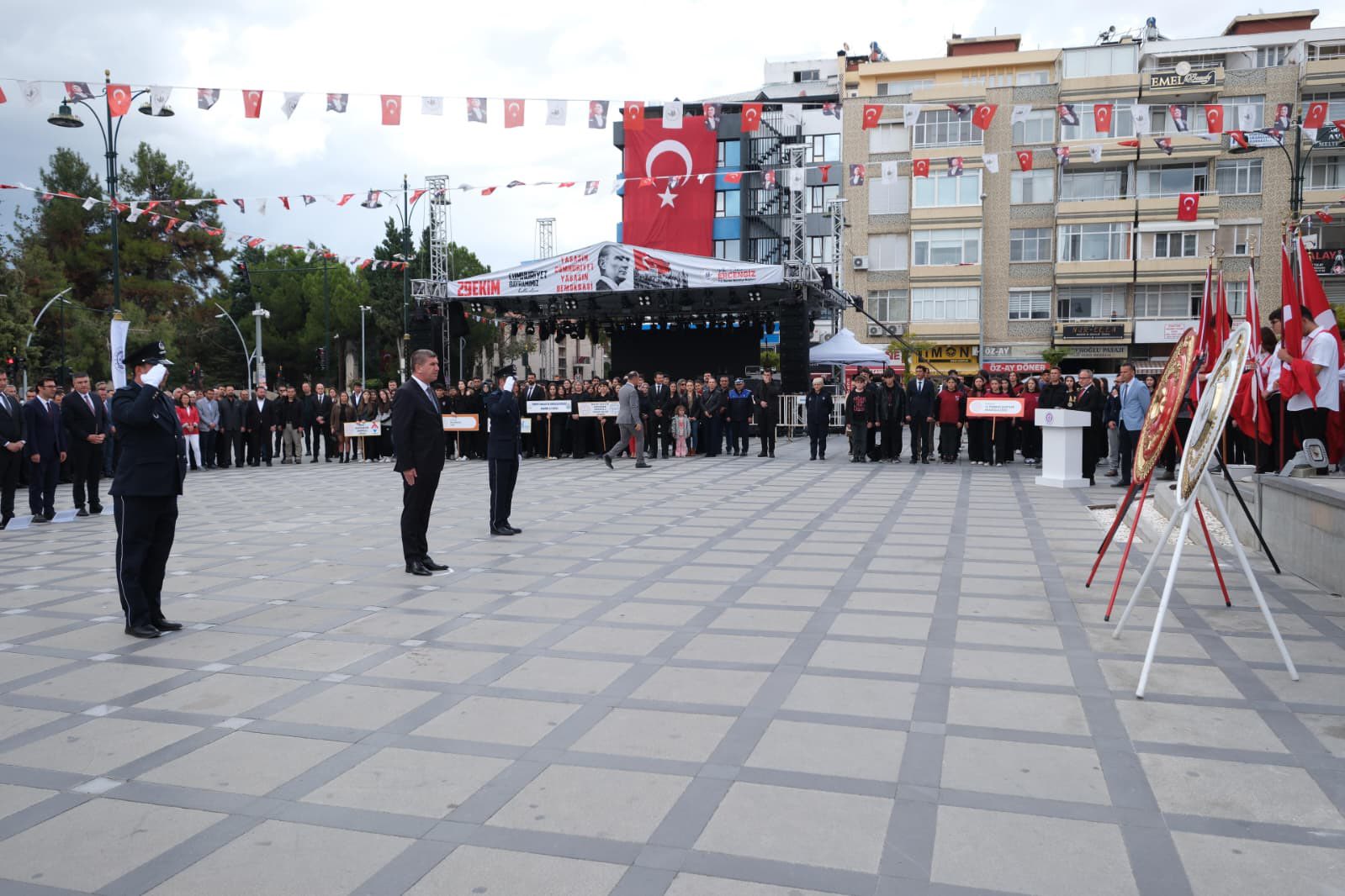Aziz şehitler ve Gazi Mustafa Kemal Atatürk’ün manevi huzurunda gerçekleştirilen tören, İstiklal Marşı’nın okunmasıyla sona erdi. Kent genelinde bugün ve yarın Cumhuriyet Bayramı kutlamaları kapsamında çeşitli etkinlikler düzenlenecek.