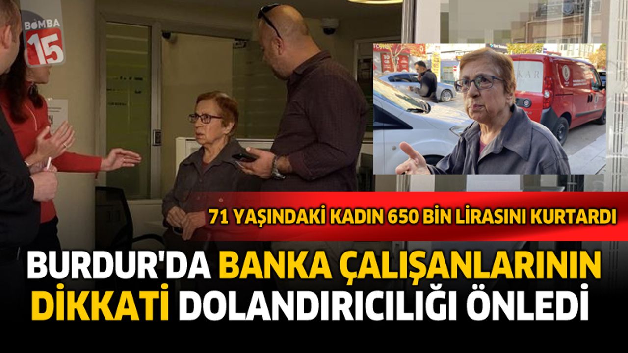 Burdur’da kendisini polis olarak tanıtan dolandırıcıların tuzağına düşmek üzere olan 71 yaşındaki Sevim A., banka çalışanlarının dikkati sayesinde dolandırılmaktan son anda kurtuldu.