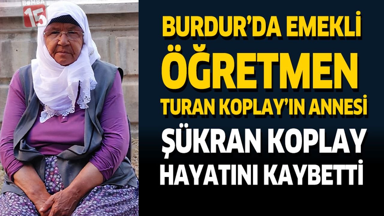 Burdur’un Yeşilova ilçesi Merkez Mahallesi’nde ikamet eden Şükran Koplay hayatını kaybetti. Merhume; merhum Mehmet Ali Koplay’ın eşi, Merkez Mahallesi Muhtarı Ünal Koplay ile Emekli Öğretmen Turan Koplay ve Ali Koplay’ın annesiydi.