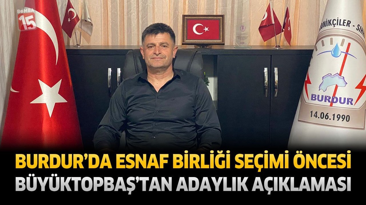 Burdur’da Esnaf ve Sanatkârlar Odaları Birliği Başkanlığı seçimi öncesi adaylık süreci hareketlendi. Elektrik Elektronik ve Sıhhi Tesisatçılar ve Tamircileri Esnaf ve Sanatkârlar Odası Başkanı Hakan Büyüktopbaş, 2 Mayıs 2026 tarihinde gerçekleştirilecek seçimler öncesinde Birlik Başkanlığına aday olduğunu açıkladı.