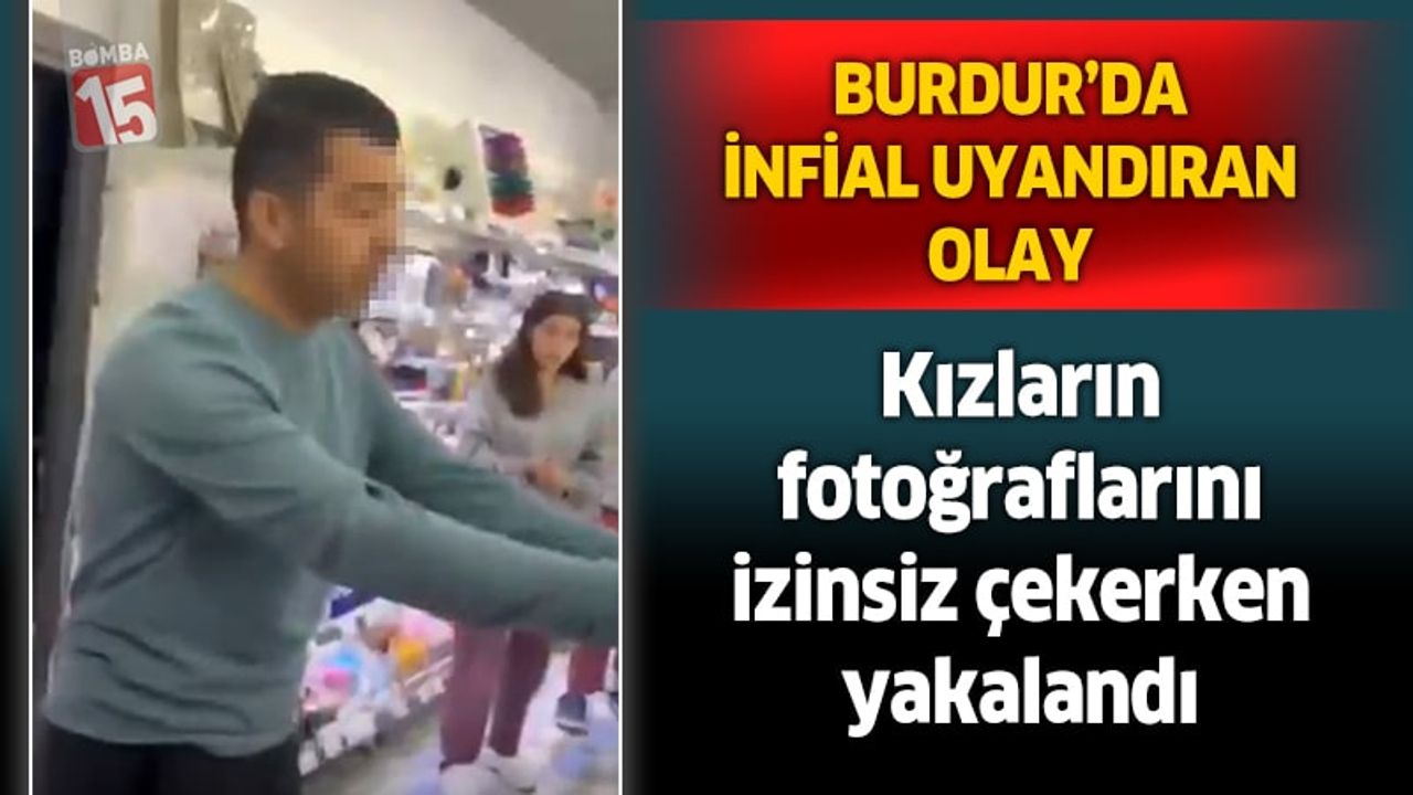 Burdur'da bir kırtasiyeye müşteri olarak giren kimliği belirsiz bir şahıs, kızların fotoğraflarını izinsiz çekerken cep telefonu kamerasına yansıdı. Kızların şikayetçi olması üzerine gözaltına alınan bahse konu şahıs, emniyetteki işlemlerin ardından çıkarıldığı mahkemece adli kontrol şartıyla serbest bırakıldı.