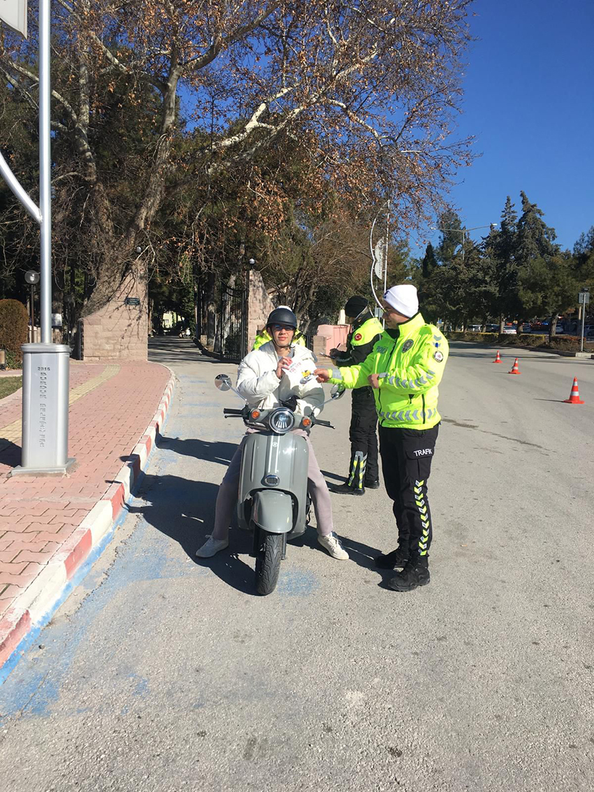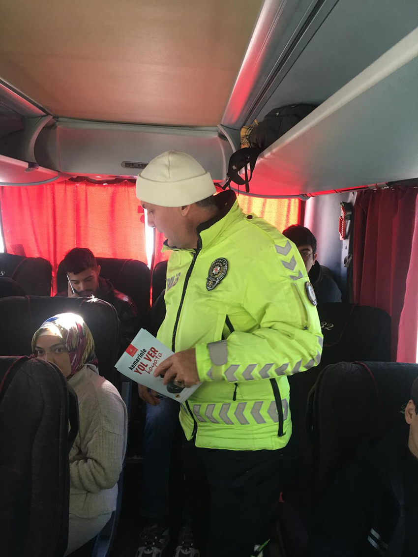 Vatandaşlara emniyet kemeri kullanımı, seyir halindeyken cep telefonu kullanımının riskleri, kış lastiğinin önemi ile motosiklet sürücülerine yönelik kask ve koruyucu ekipman kullanımı konularında bilgilendirme yapıldı. Ayrıca trafik güvenliği farkındalığını artırmak amacıyla bilgilendirici broşürler dağıtıldı.