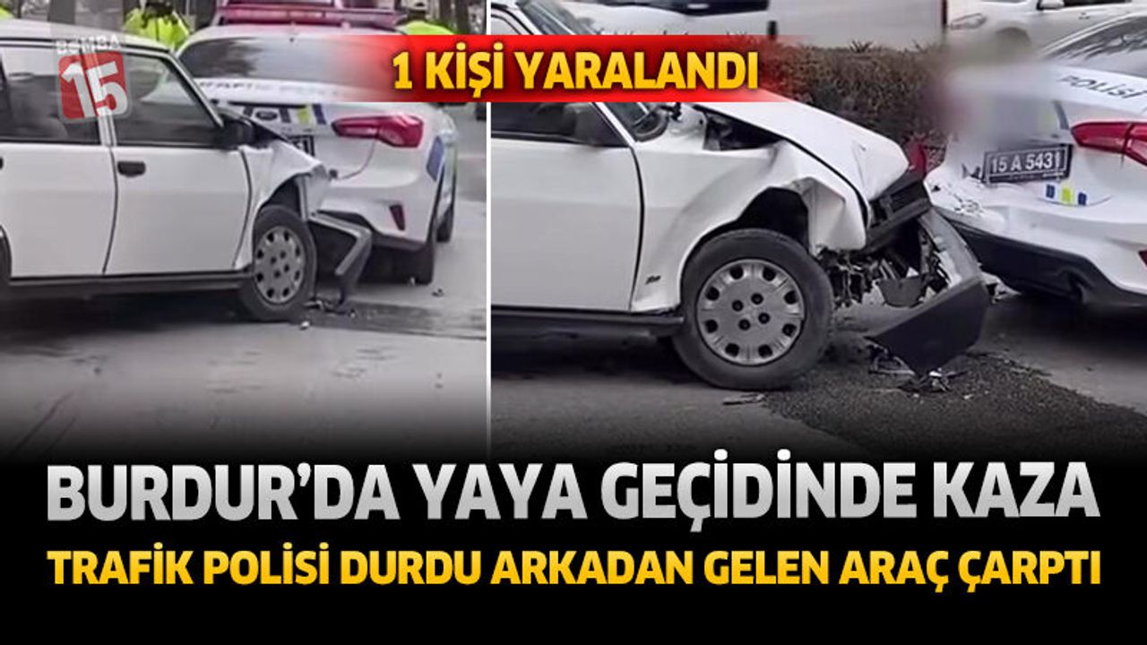 Edinilen bilgilere göre, yaya geçidinden karşıya geçmek isteyen yayaya yol vermek için yavaşlayan 15 A 5431 plakalı trafik polisinin ekip aracına, A.B. idaresindeki 15 NF 079 plakalı Tofaş marka otomobil arkadan çarptı.