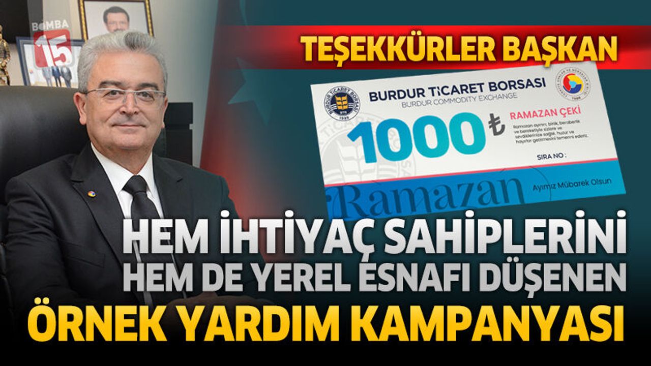 Burdur Ticaret Borsası Başkanı Ömer Faruk Gündüzalp, Ramazan ayı yardımlarında bu yıl farklı ve örnek bir uygulamayı hayata geçirdi. Geçmiş yıllarda ihtiyaç sahibi ailelere erzak kolileri hazırlayarak ulaştıran Burdur Ticaret Borsası, bu yıl yardım modelini değiştirerek “Ramazan Hediye Çeki” uygulamasını başlattı.