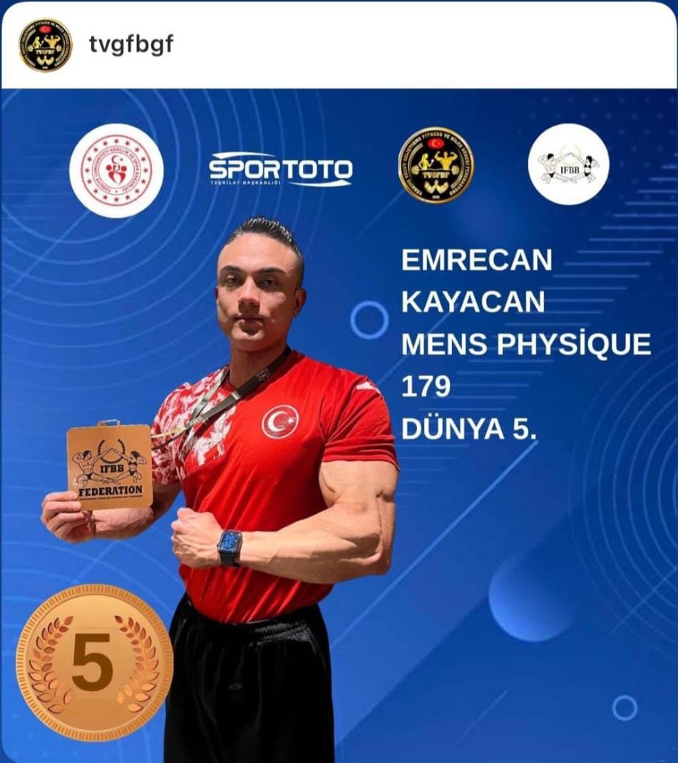 Başarılı sporcu, daha önce Türkiye Vücut Geliştirme Şampiyonası’nda da büyük bir çıkış yakalamıştı. Türkiye Şampiyonası İzmir’de büyük bir heyecanla gerçekleşmiş, Burdur’u temsil eden Emrecan Kayacak Büyük Erkekler -179 cm kategorisinde ikinci kez Türkiye Şampiyonu olarak önemli bir başarıya imza atmıştı.