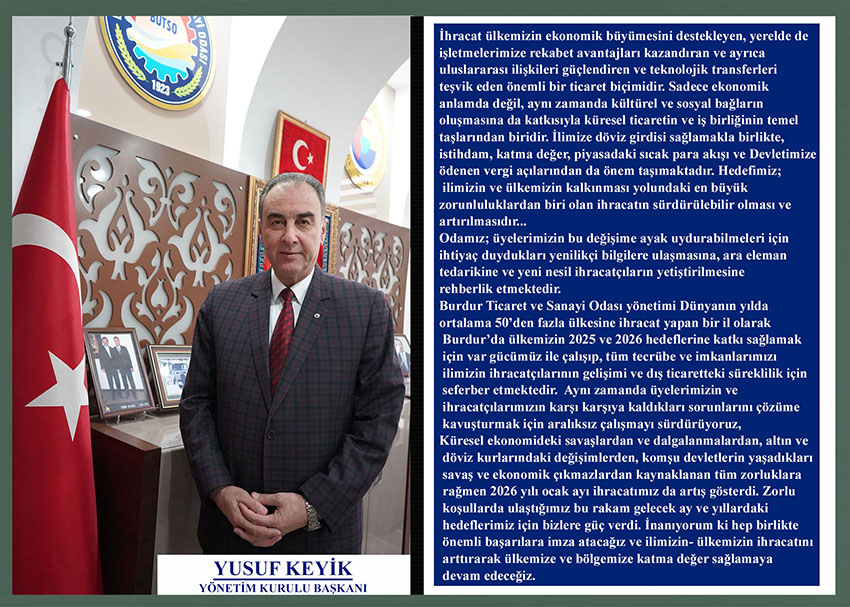 Keyik, son olarak Burdur’un ihracatına katkı sunan tüm firmalara, çalışanlara ve emeği geçenlere teşekkür ederek başarılarının devamını diledi.
