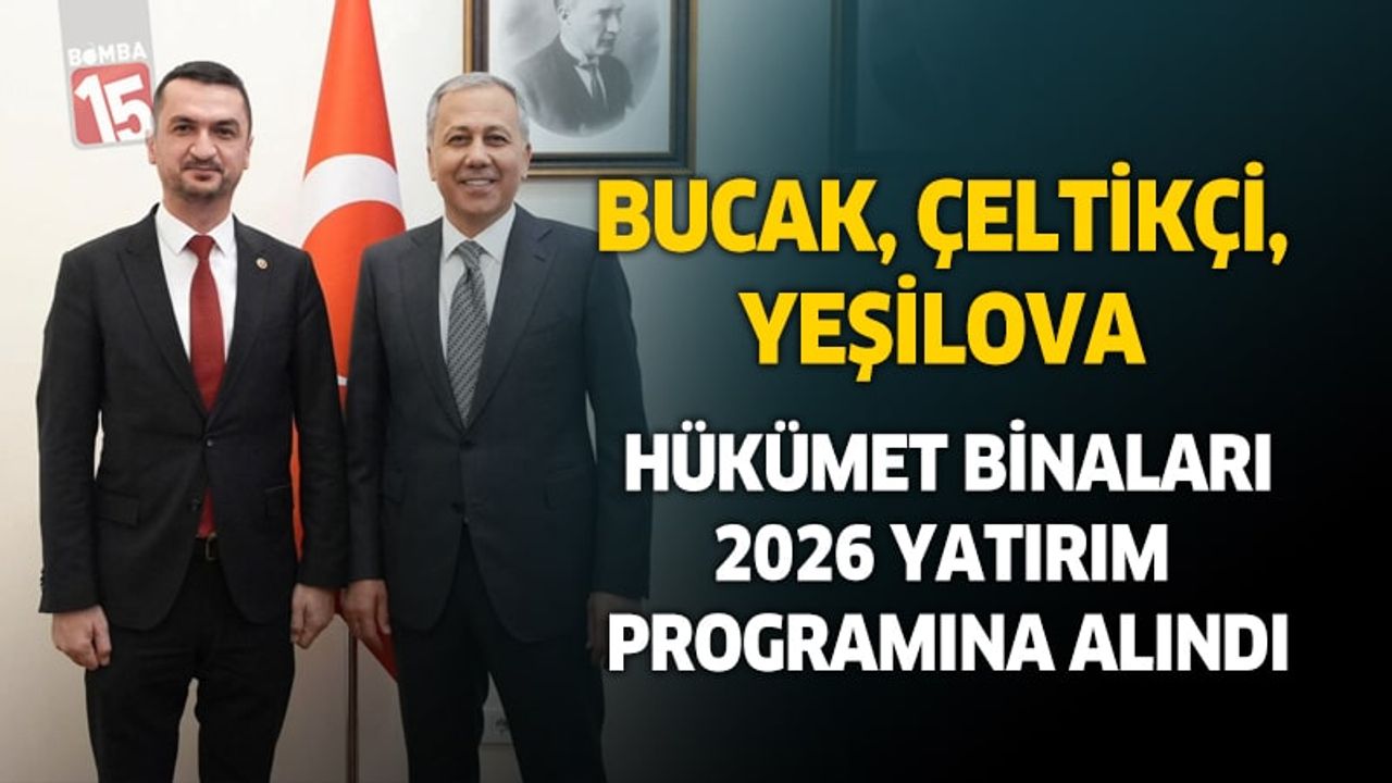 AK Parti Burdur Milletvekili Mustafa Oğuz, İçişleri Bakanı Ali Yerlikaya ile gerçekleştirilen görüşmelerin ardından Bucak, Çeltikçi ve Yeşilova ilçelerine yeni Hükümet Konakları yapılacağını duyurdu. Söz konusu yatırımların, 2026 Yılı Yatırım Programı’na alındığı belirtildi.
