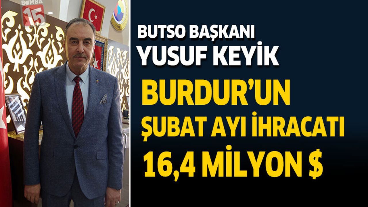 Burdur Ticaret ve Sanayi Odası Başkanı Yusuf KEYİK, aylık olarak Türkiye’nin ve Burdur’un güncel ihracat performansı değişimleri hakkında kamuoyunu bilgilendirmeye devam ediyor.