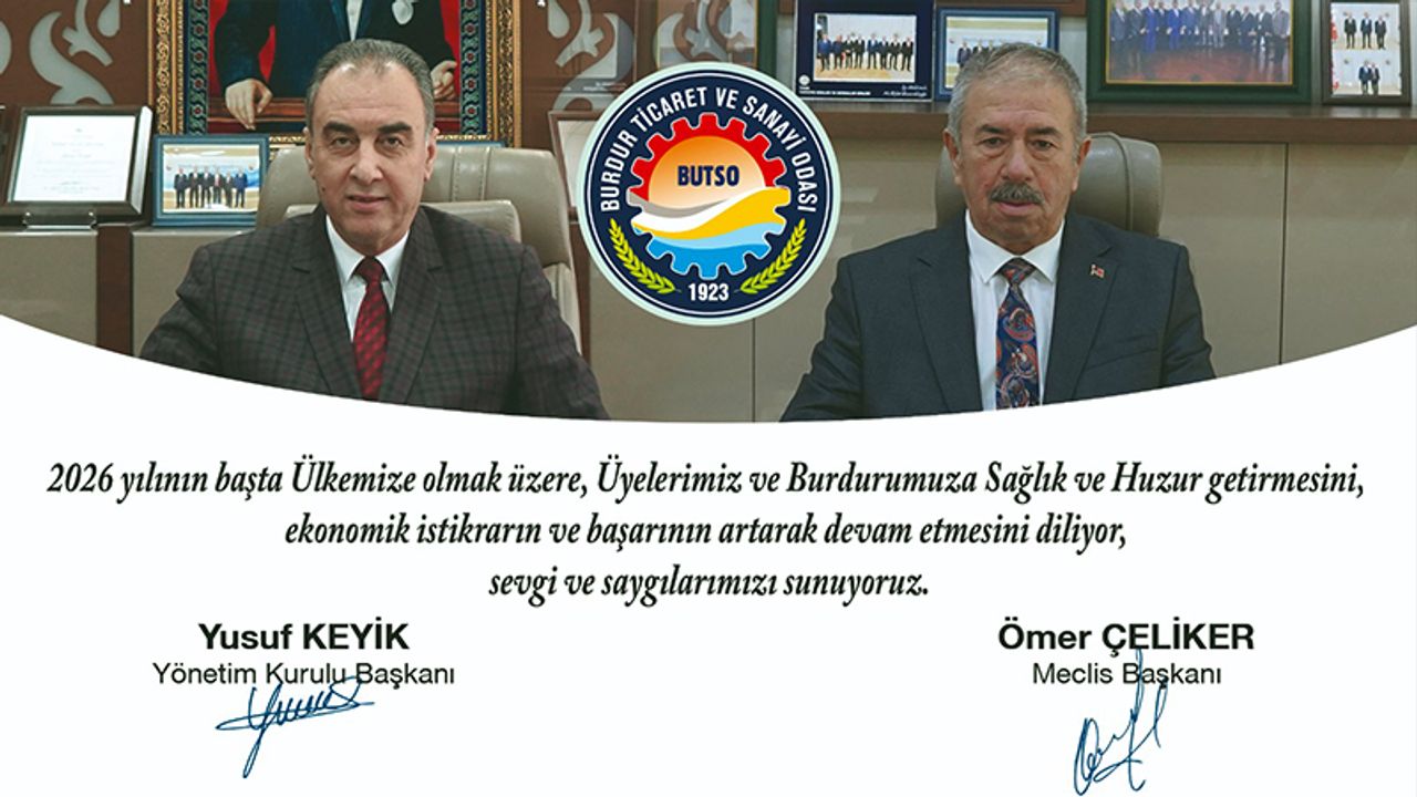 Burdur Ticaret ve Sanayi Odası (BUTSO) Yönetim Kurulu Başkanı Yusuf Keyik ile Meclis Başkanı Ömer Çeliker, 2026 yılı dolayısıyla bir yeni yıl tebrik mesajı yayımladı.