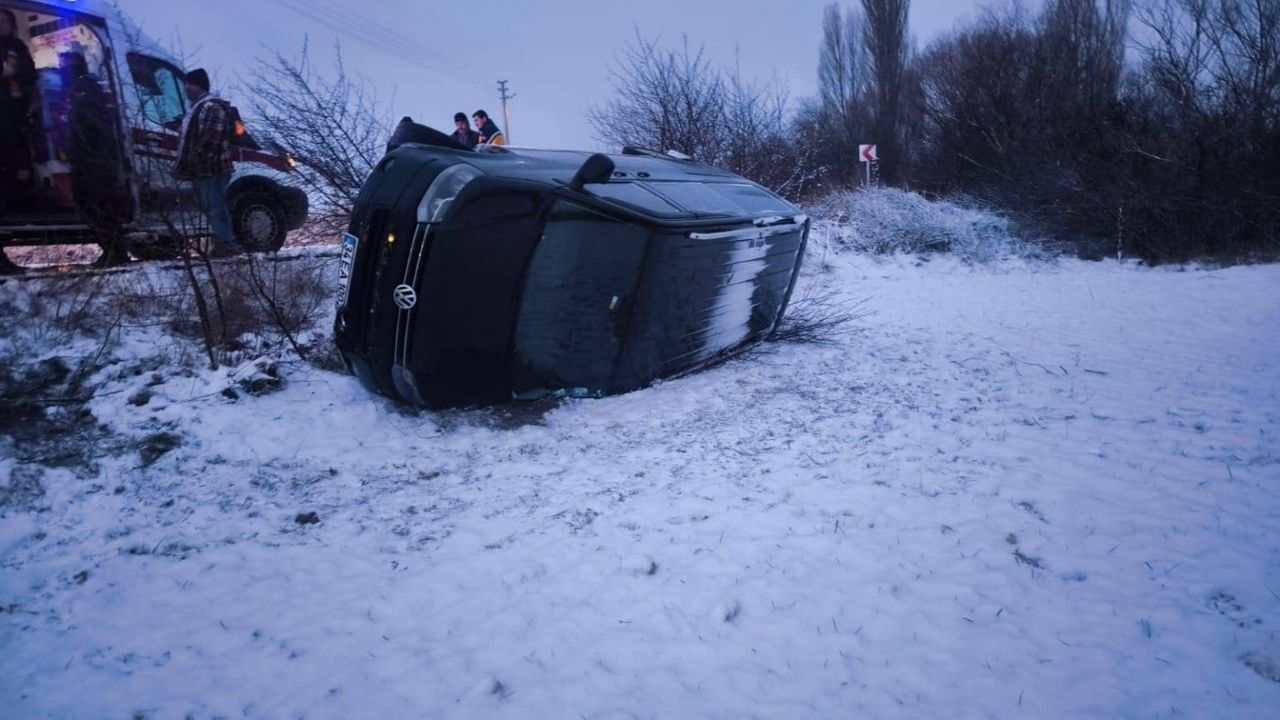Afyonkarahisar'da yağan kar sonrası buzlanan yolda kayan minibüsün şarampole devrilmesi sonucu yaşanan trafik kazasında 5 kişi yaralandı.