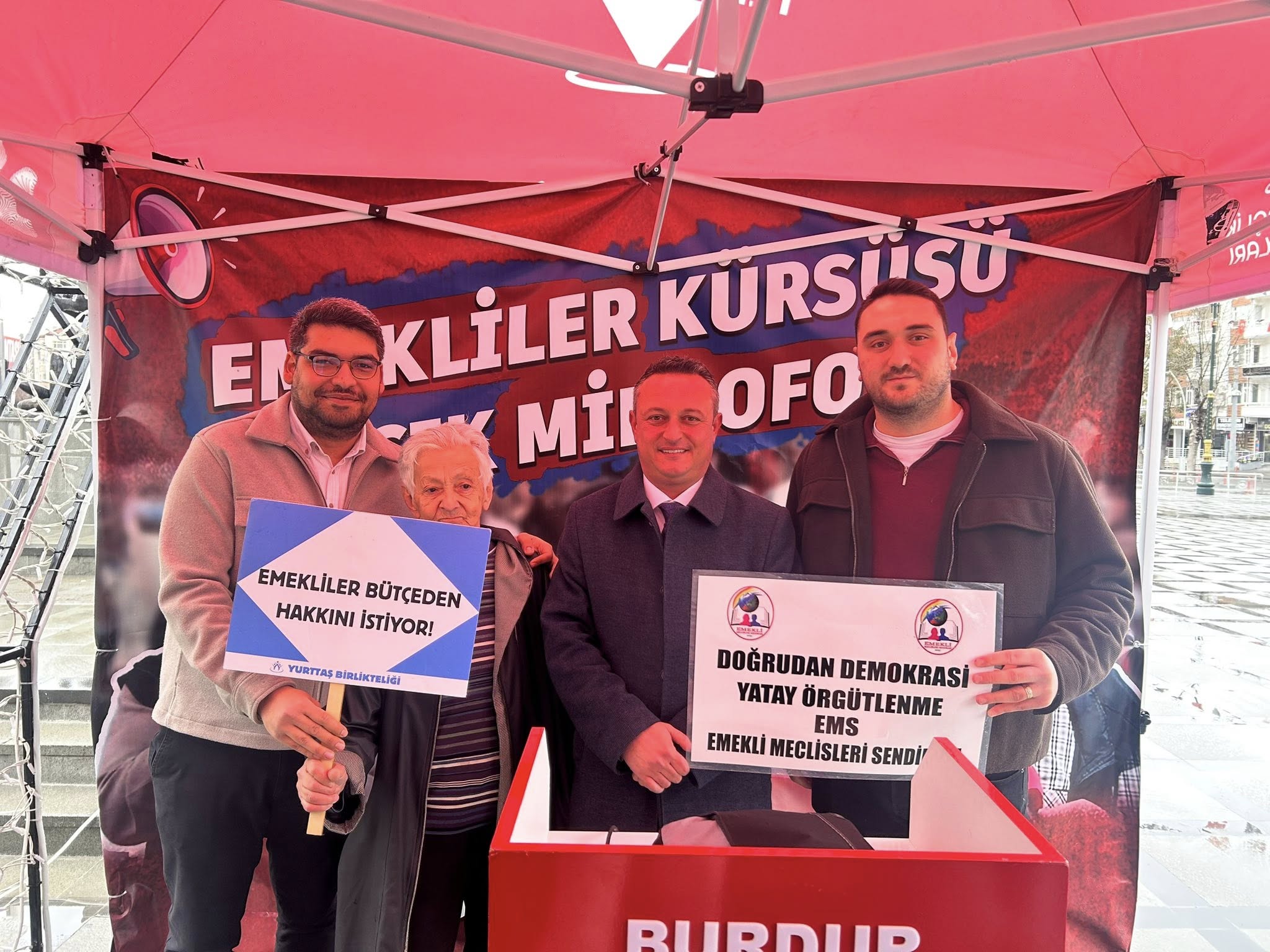 Cumhuriyet Halk Partisi (CHP) Burdur İl Başkanlığı tarafından düzenlenen “Emekliler Kürsüsü – Açık Mikrofon” eylemi, Cumhuriyet Meydanı’nda yoğun yağışa rağmen geniş katılımla gerçekleştirildi. Gün boyu süren etkinlikte emekliler kürsüye çıkarak yaşadıkları ekonomik sorunları dile getirdi. Yağmura rağmen meydanı terk etmeyen emekliler, dayanışma ve birlik mesajı verdi.