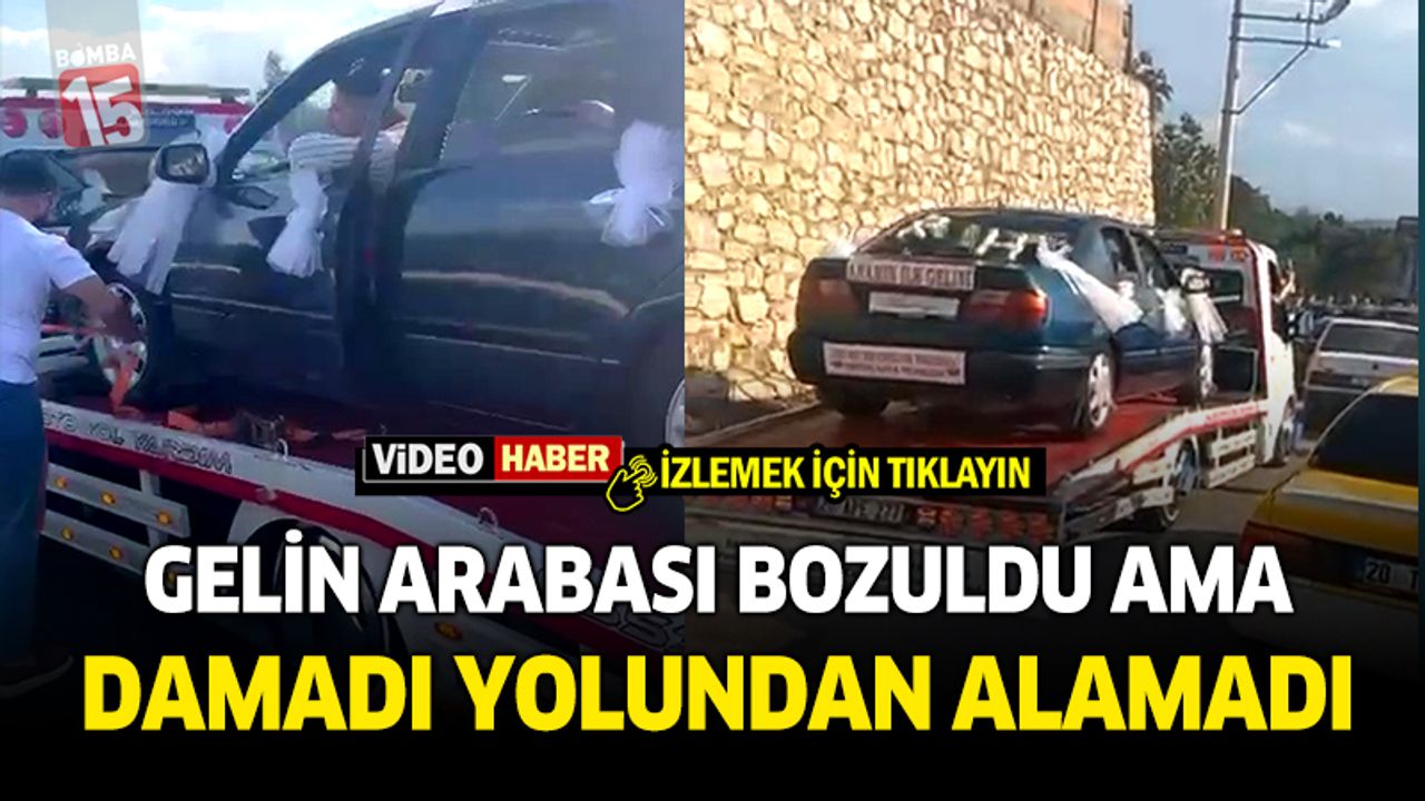 Denizli'de düğün konvoyunda arızalanan gelin arabasının yardımına yoldan geçen çekici yetişti. Gelin ve damadın içerisinde bulunduğu araç konvoya çekici ile devam etti.