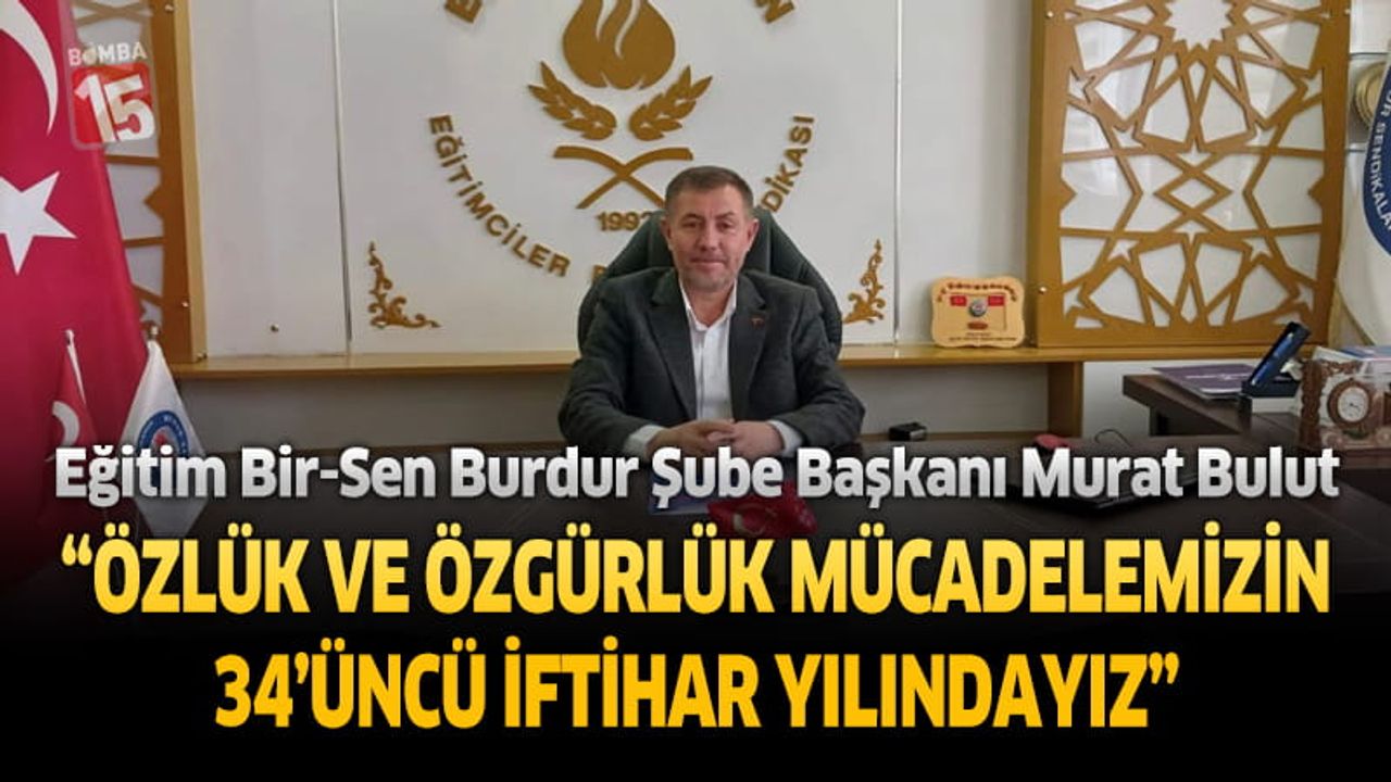 Eğitim-Bir-Sen’in kuruluşunun 34’üncü yıl dönümü dolayısıyla bir açıklama yapan Eğitim-Bir-Sen Burdur Şube Başkanı Murat Bulut, sendikanın 34 yıllık emek, tecrübe ve başarı mücadelesini değerlendirdi.