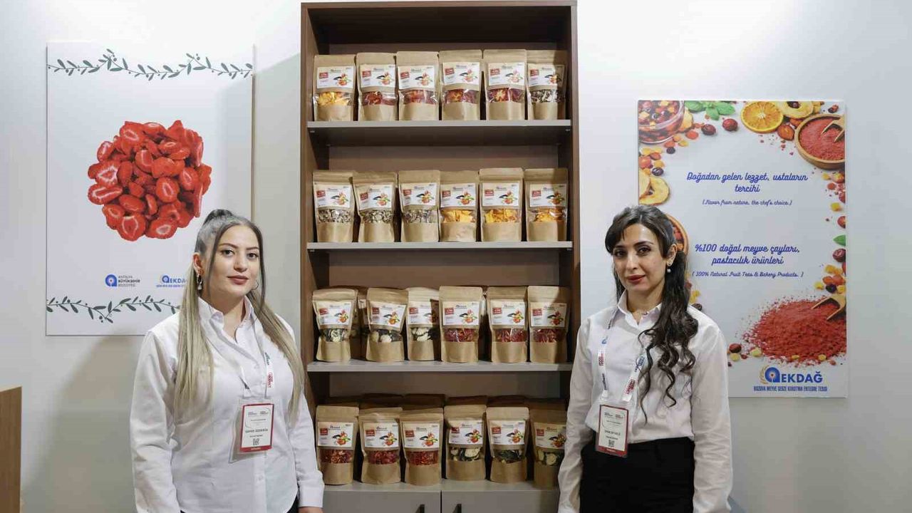 Antalya Büyükşehir Belediyesi, bu yıl 32'ncisi düzenlenen Uluslararası Gıda ve İçecek İhtisas Fuarı'nda EKDAĞ Bozova Yaş Meyve ve Sebze Kurutma Entegre Tesisi'nde üretilen ürünleri tanıtıyor. Her yıl vatandaşların yoğun ilgi gösterdiği fuarda, Antalya Büyükşehir Belediyesi EKDAĞ standı ziyaretçilerin en çok uğradığı alanlardan biri oldu.
