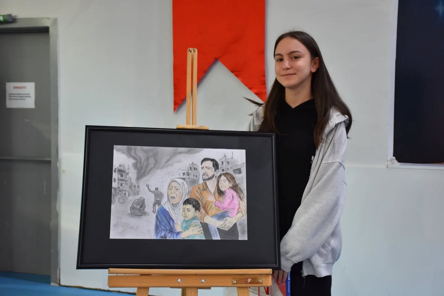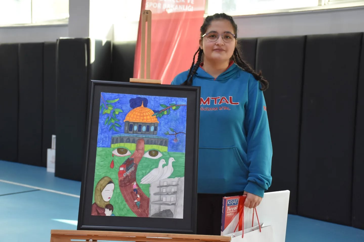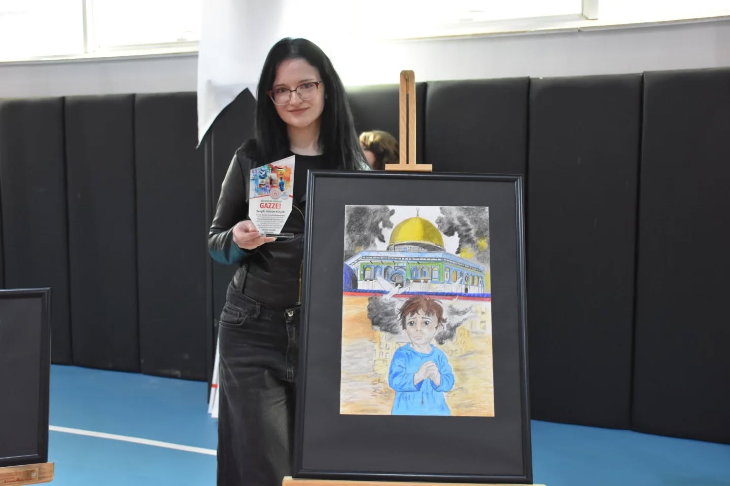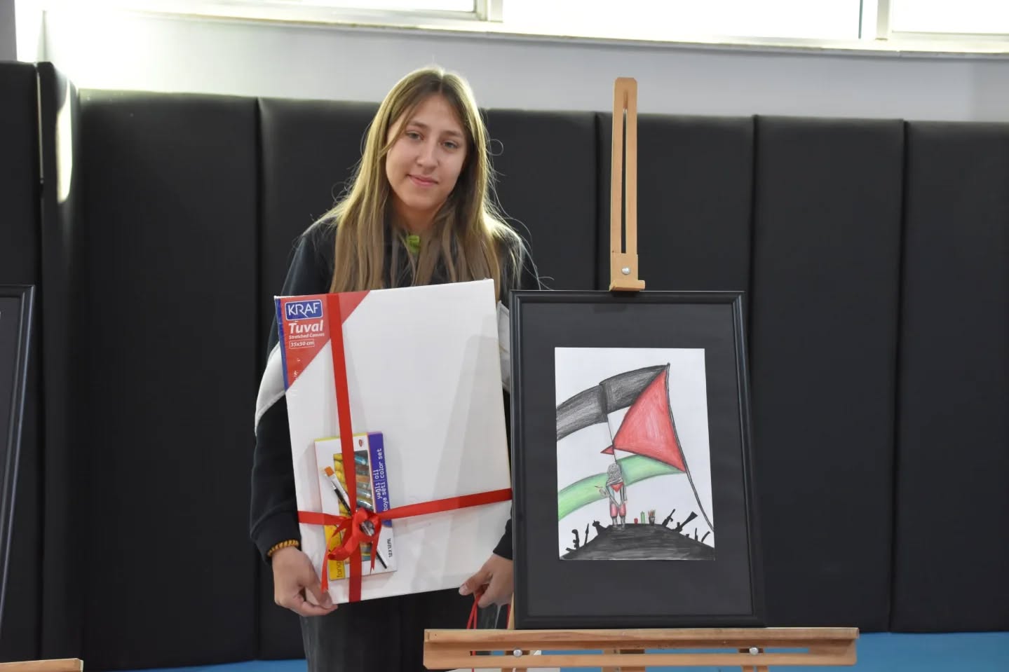 “Direnişin Simgesi Gazze” konusuyla düzenlenen yarışma, gençlerin fırçalarıyla umudu, dayanışmayı ve Gazze’nin yaşadığı insanlık dramını resmetmesine imkân tanıdı. Resimlerine duygu ve güçlü mesajlar yükleyen gençler, yoğun katılım gösterdi.