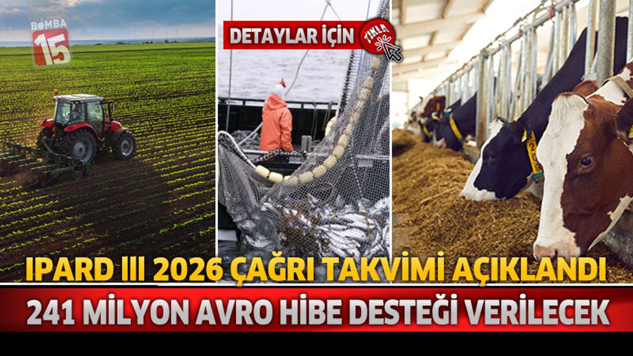Türkiye ve Avrupa Birliği ortaklığıyla finanse edilen IPARD III Programı kapsamında, Tarım ve Orman Bakanlığına bağlı Tarım ve Kırsal Kalkınmayı Destekleme Kurumu (TKDK) 2026 yılı çağrı takvimini yayımladı. Program için toplam 241 milyon avro hibe desteği sağlanacak.