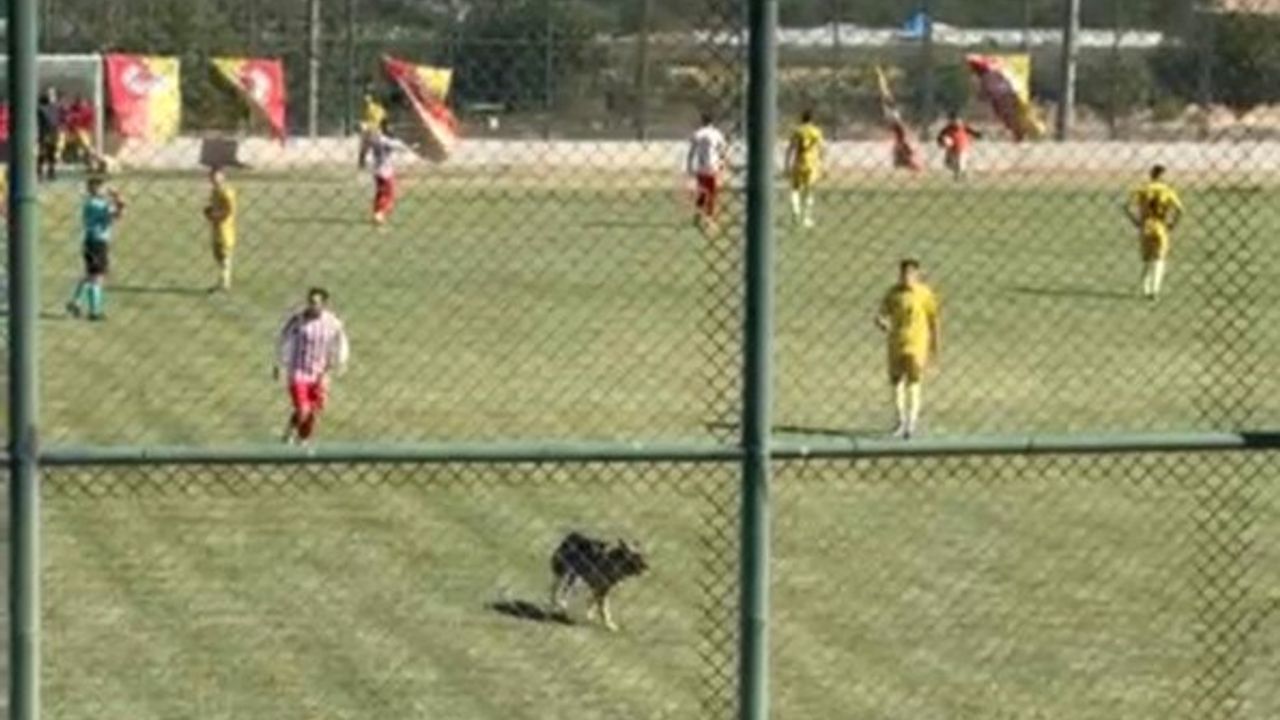 Keçiborlu Belediyespor’un, 1922 Akşehirspor ile oynadığı Bölgesel Amatör Lig maçının 2. dakikasında sahaya giren köpek nedeniyle karşılaşma kısa süreliğine durdu.