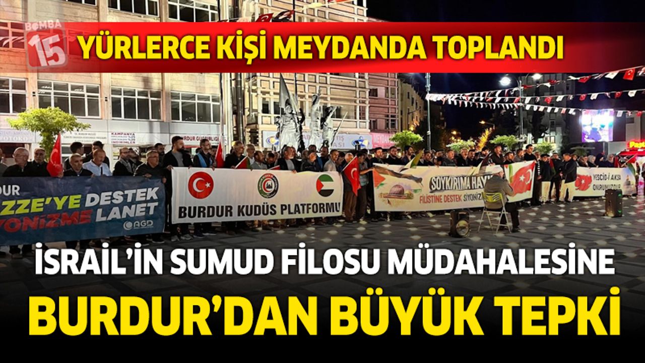 İsrail ablukasını kırmak ve insani yardım ulaştırmak amacıyla Gazze’ye doğru yola çıkan Küresel Sumud Filosu’na İsrail ordusunun fiziki müdahalesi Burdur’da tepkiyle karşılandı. Burdur Kudüs Platformu’nun çağrısıyla Cumhuriyet Meydanı’nda toplanan yüzlerce kişi, ellerinde Filistin ve Türkiye bayraklarıyla İsrail’i protesto etti.