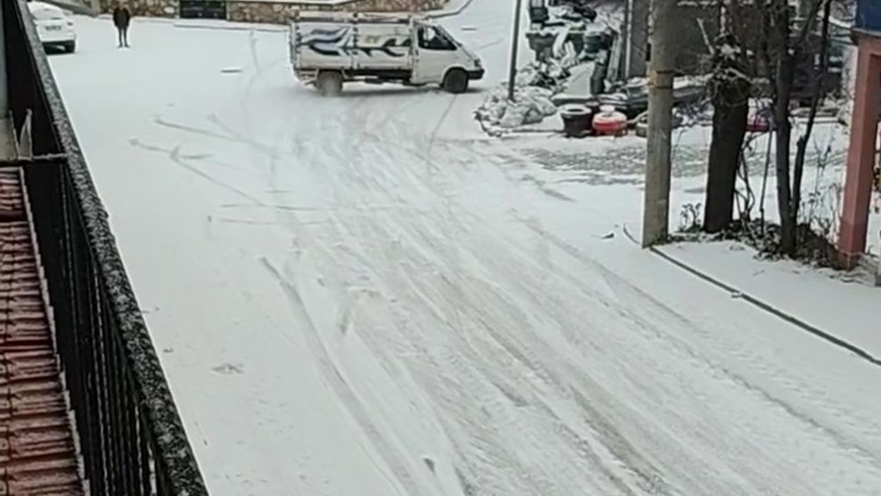 Denizli'de kar yağışı sonrası buzlanan yolda araçlar zor anlar yaşadı. Bir kamyonet sürücünün buzlu yolda kayarak gittiği anlar kameralara yansıdı.