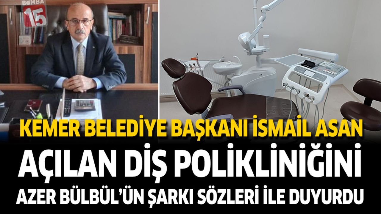 Kemer Belediye Başkanı İsmail Asan, ilçede büyük önem taşıyan bu sağlık yatırımını sosyal medya hesabından yaptığı dikkat çekici bir paylaşımla duyurdu. Başkan Asan, polikliniğin açılış müjdesini alışılmışın dışında bir yaklaşımla, Rahmetli sanatçı Azer Bülbül’üan şarkı sözleri ile kamuoyuyla paylaştı.