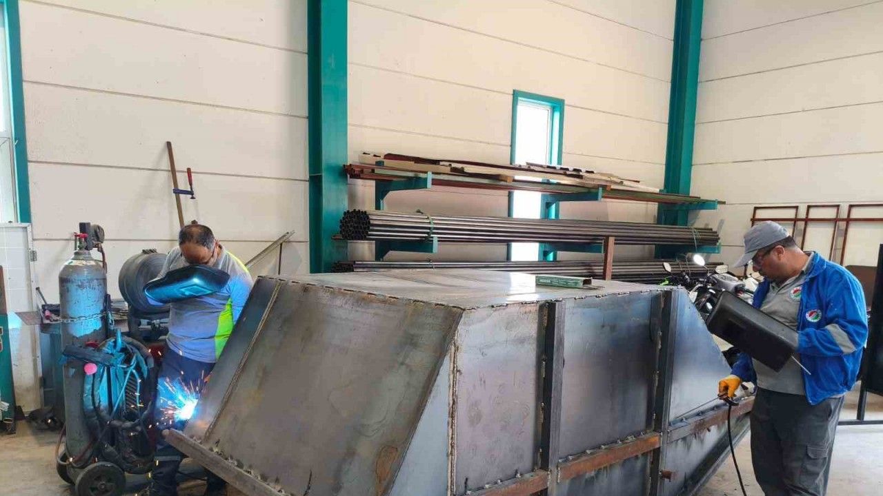 Kepez Belediyesi, Temizlik İşleri Müdürlüğü’ne bağlı Çöp Konteyner Üretim Atölyesi’nde; sanayi siteleri, büyük depolar ve ihracatçı firmaların ihtiyaç duyduğu, 4 metreküp hacminde atık toplayabilen sanayi tipi kazanları kendi iş gücüyle üretiyor.