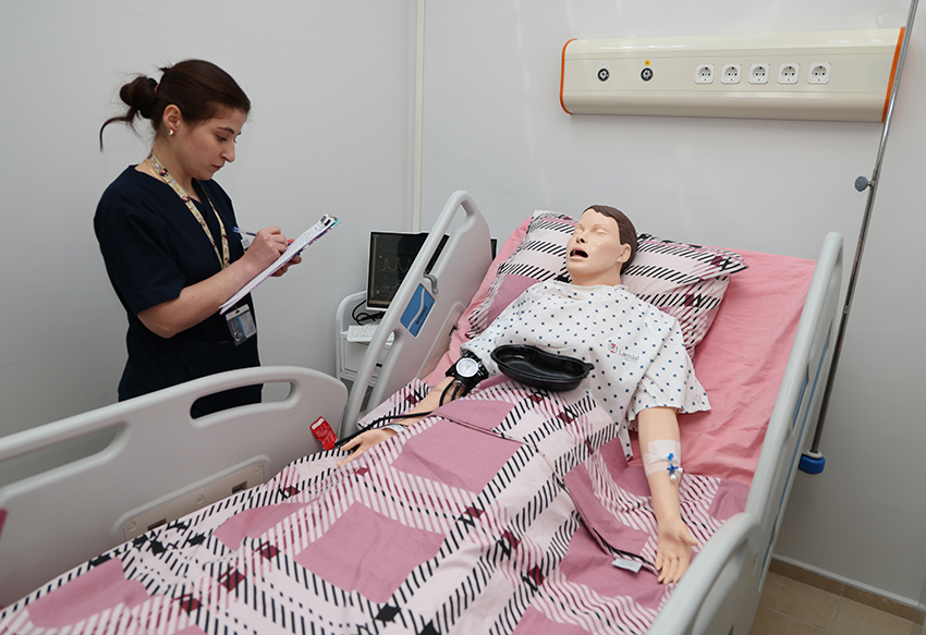 Merkezin öne çıkan donanımı ise ileri teknolojiyle geliştirilen; insan benzeri özellikler taşıyan, yüksek gerçeklik düzeyine sahip simülatörler. Konuşabilen, tepki verebilen ve insan fizyolojisini gerçekçi biçimde yansıtan bu simülatörler sayesinde öğrencilerimiz; hastane ortamına en yakın koşullarda, gerçek hasta senaryolarına uygun ve risksiz bir ortamda uygulama yapabiliyor. Böylece klinik ortama geçmeden önce, hasta güvenliğini riske atmadan yetkinliklerini pekiştirmeleri sağlanıyor.