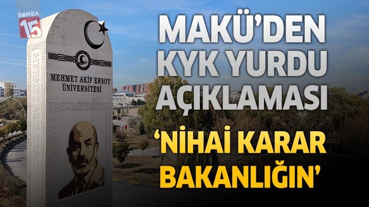 Burdur’da bir süredir siyaset ve sivil toplum kuruluşlarının gündeminde yer alan Kredi ve Yurtlar Kurumu (KYK) yurdunun üniversite yerleşkesine yapılması konusuna ilişkin Mehmet Akif Ersoy Üniversitesi (MAKÜ) Rektörlüğü yazılı bir açıklama yaptı.