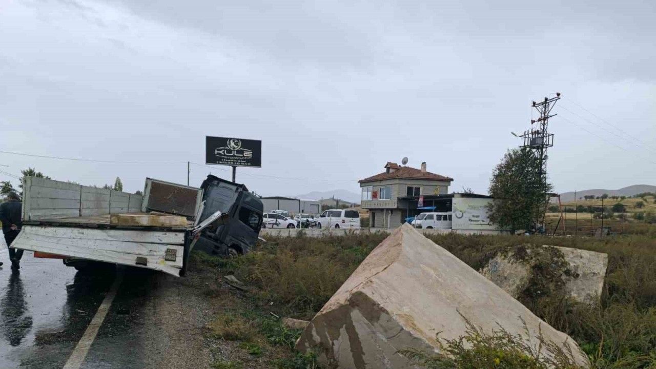 Kaza, Şuhut ilçesi Mahmutköyü yolu üzerinde meydana geldi. Edinilen bilgilere göre Mahmutköyü istikametinden Şuhut ilçe merkezi yönüne ilerleyen C.Ö. idaresindeki 20 APD 134 plakalı mermer yüklü tır, önünde seyreden ve tarım aracı olarak bilinen patpata çarpmamak için manevra yapınca kontrolden çıktı. Savrulan araç yağmurundan etkisi ile bir anda kaymaya başladı. Yaklaşık 100 metre kayan tır ardından yol kenarındaki akaryakıt istasyonun istinat duvarına çarparak durabildi. Güvenlik kameraları tarafından da görüntülenen olayda şans eseri ölen ya da yaralanan olmazken olayda büyük çapta maddi hasar meydana geldiği belirtildi.